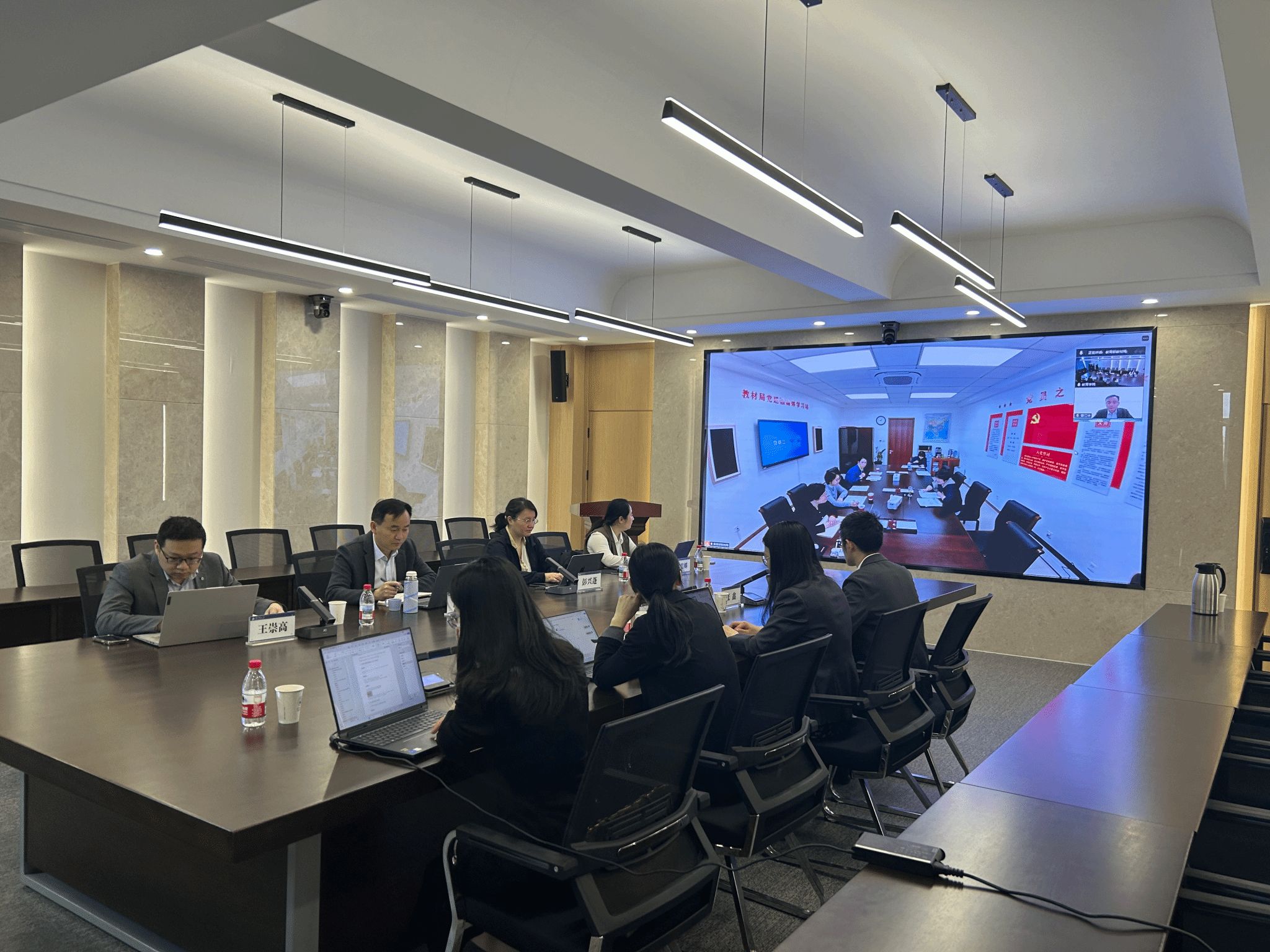2025年4月17日上午9点,教育部教材局、中国教育科学研究院、华中师范大学(特殊教育教材建设和管理政策研究基地)共同召开特殊教育教材建设研讨会。教材局相关领导、中国教育科学研究院心理与特殊教育研究所副研究员杨希洁、副研究员冯雅静、助理研究员吴扬,华中师范大学教育学院院长、基地执行主任雷江华,融合教育教研室主任、基地办公室主任彭兴蓬,特殊教育支部书记、基地成员朱楠,特殊教育系副主任、基地办公室副主任宫慧娜,基地办公室副主任王崇高、基地成员苏慧、袁维、张鑫共同参加会议。