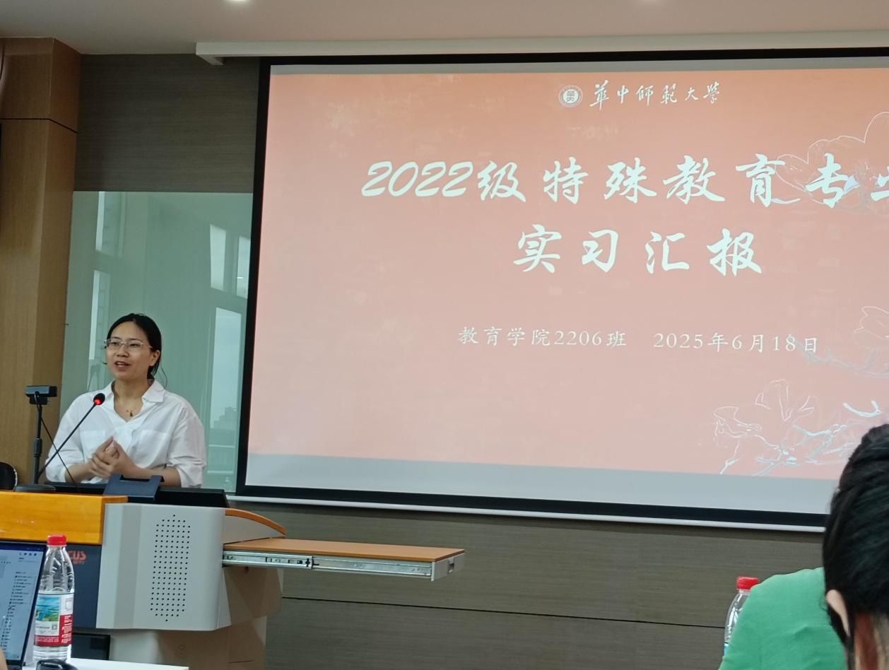 2025年6月18日下午,特殊教育专业2206班实习汇报在田家炳楼905教室举行。系主任孙玉梅、班主任袁维及各实习点指导教师到场,共同见证同学们在实习期间的成长与收获。